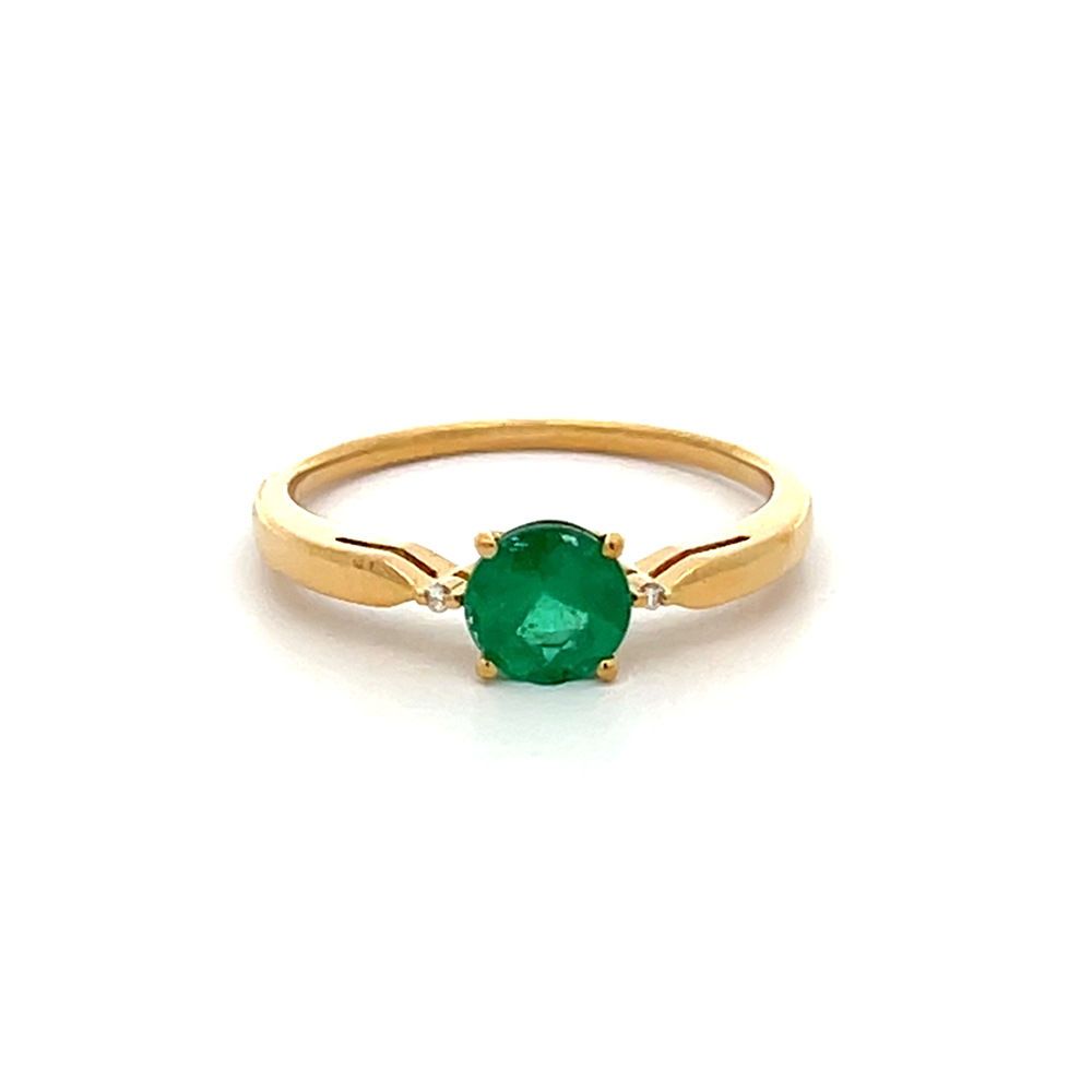 O anel de Esmeralda ArtOuro foi produzido com uma linda gema (0,69cts) e ouro amarelo sólido 18k (2,31grs). Também usamos diamantes de padrão internacional VS2 com peso total de 0,01cts.