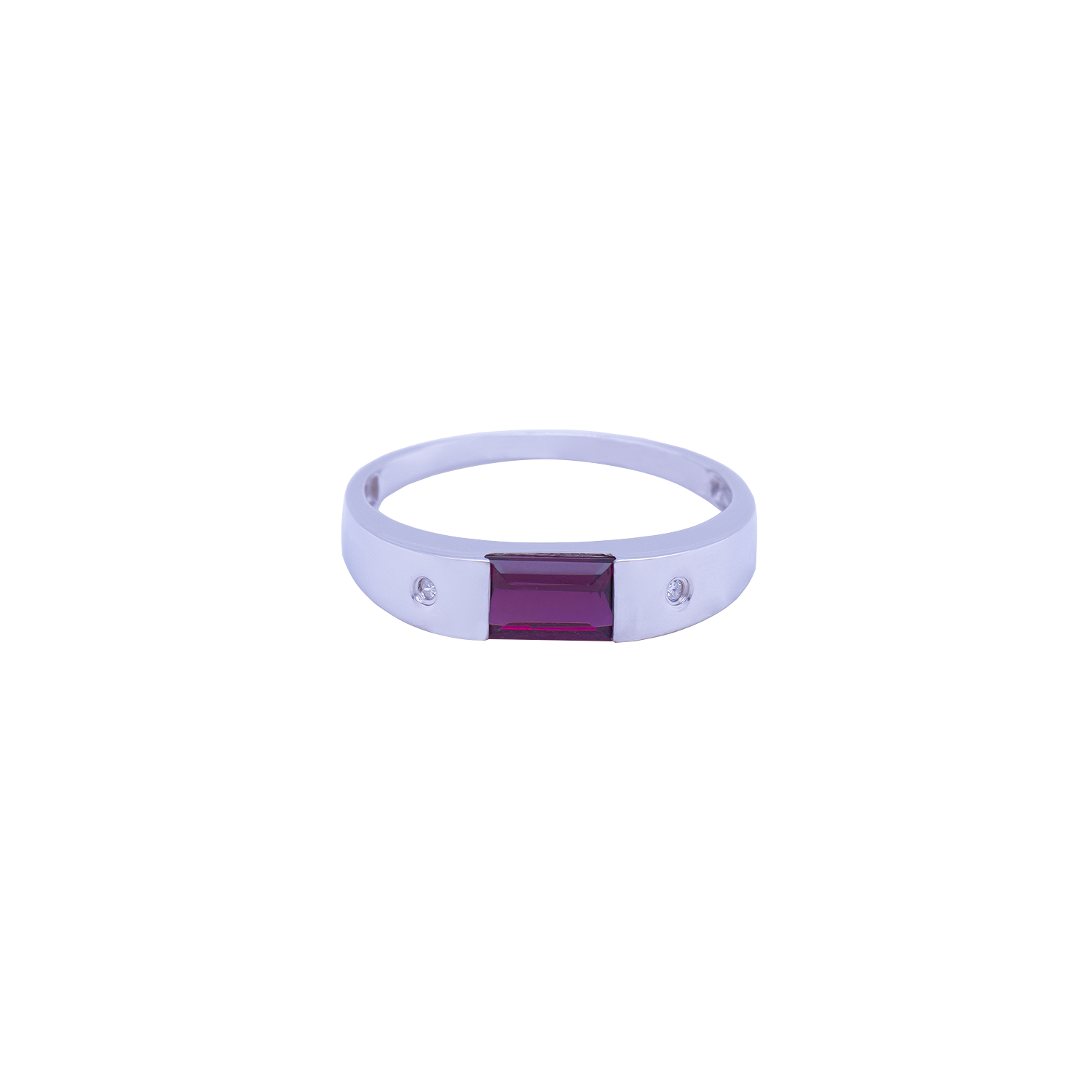 O anel de Rodolita Rosa avermelhado foi produzido com uma linda gema (0,87cts) e ouro branco sólido 18k (1,77grs). Também usamos diamantes de padrão internacional VS2 com peso total de 0,01cts.