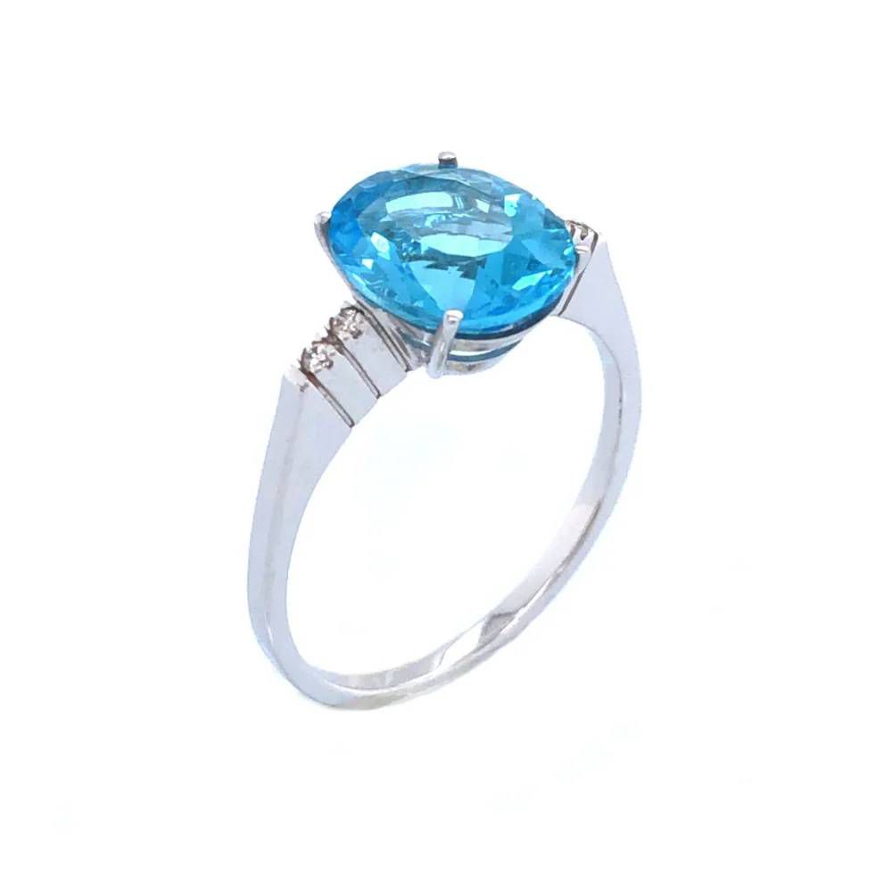 O anel de topázio azul ArtOuro foi produzido com uma linda gema (3,12cts) e ouro branco sólido 18k (2,35grs). Também usamos diamantes de padrão internacional VS2 com peso total de 0,03cts.