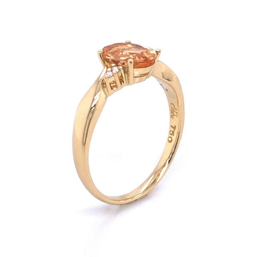 O anel de topázio Imperial ArtOuro foi produzido com uma linda gema (1,28cts) e ouro amarelo sólido 18k (3,09grs). Também usamos diamantes de padrão internacional VS2 com peso total de 0,02cts.