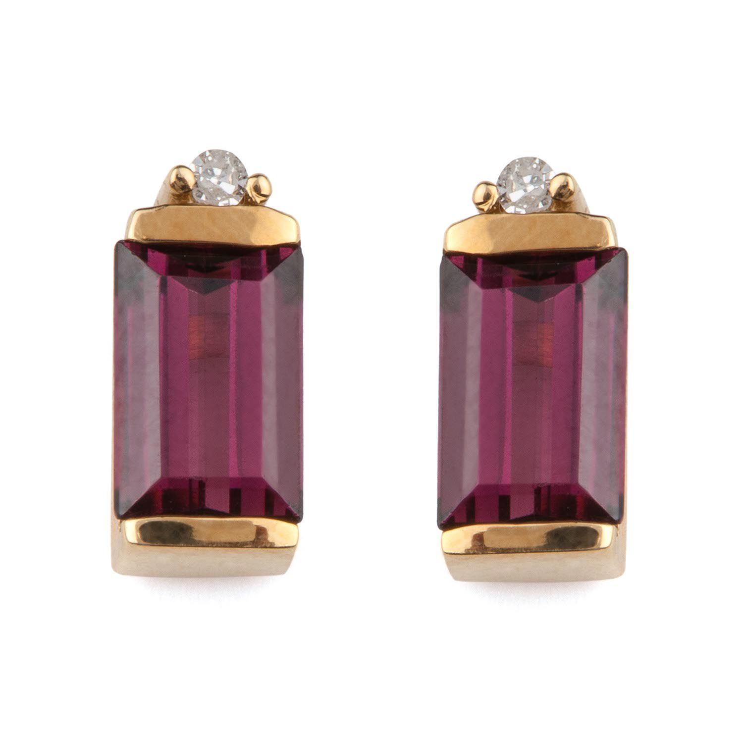O Brinco de Rodolita Rosa avermelhado foi produzido com uma linda gema (1,59cts) e ouro amarelo sólido 18k (1,84grs). Também usamos diamantes de padrão internacional VS2 com peso total de 0,01cts.